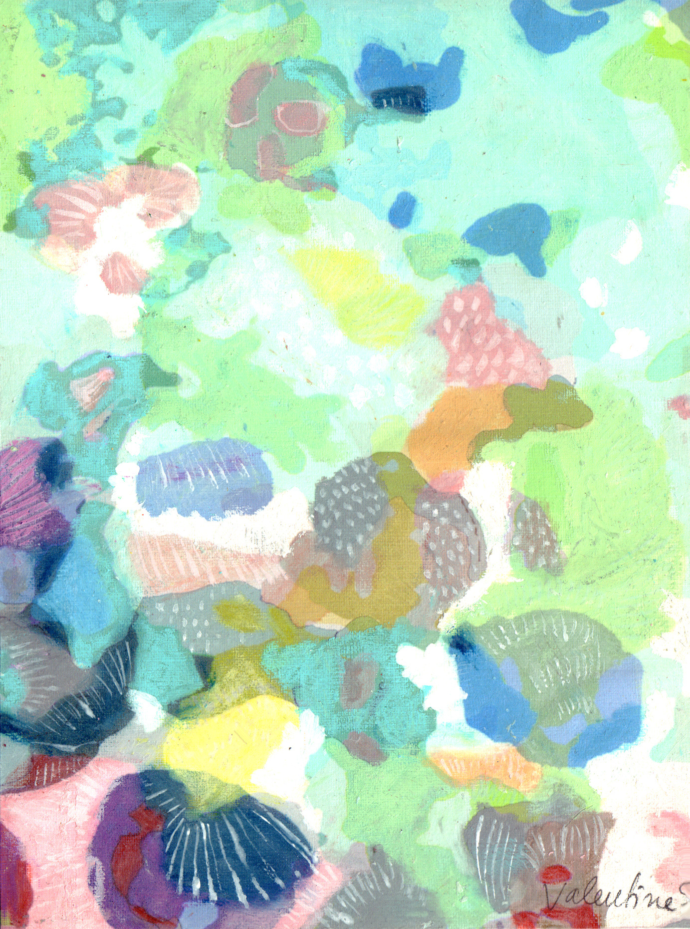«Petit massif corail 1», technique mixte, toile sur châssis, 40x40